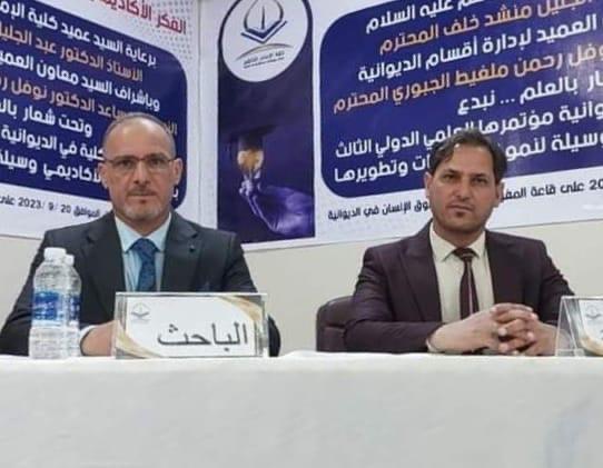 شارك التدريسيان في كلية الادارة والاقتصاد بجامعة البصرة المدرس (عدنان حبيب عروج الحميدي) والمدرس المساعد (رائد عبد فهد السعدون) في المؤتمر الدولي الثالث لكلية الامام الكاظم الحكومية بالتعاون مع مجلة كامبردج الدولية والذي عقد في قاعة المفوضية العليا لحقوق الإنسان في محافظة الديوانية بتاريخ 2023/9/20 .