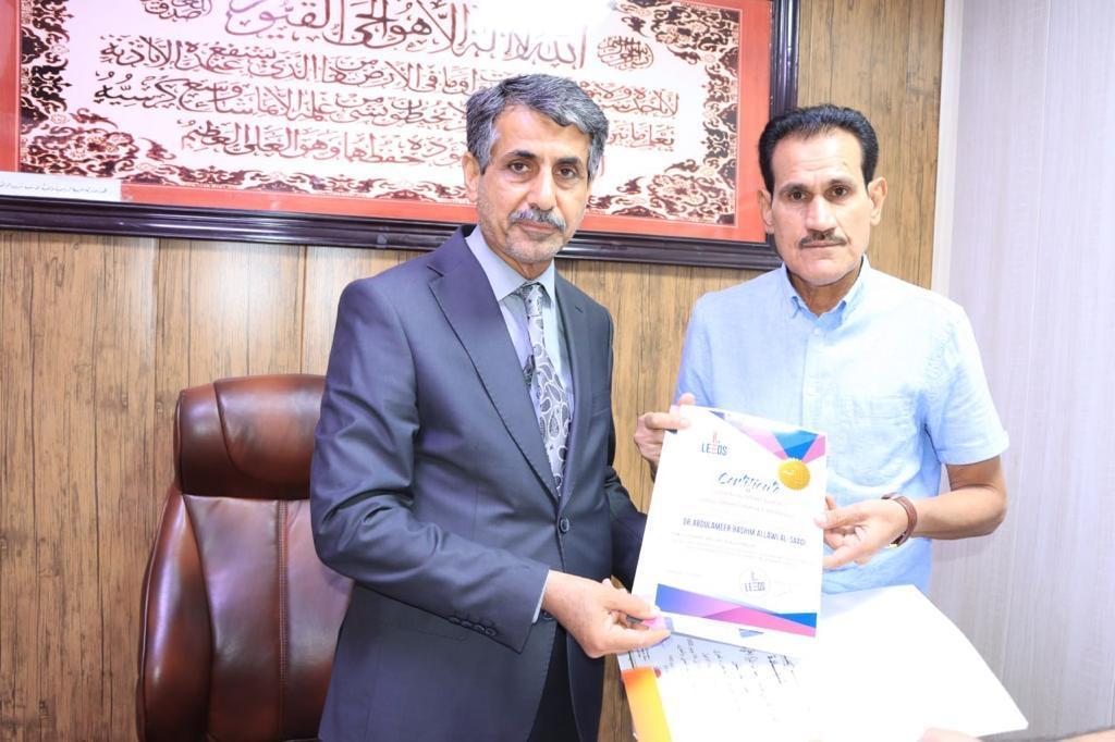 كرم رئيس جامعة البصرة الدكتور سعد شاهين حمادي التدريسي في كلية الآداب ومدير وحدة النشاطات الطلابية الدكتور عبد الأمير هاشم علاوي الساعدي لمشاركته في فعاليات المؤتمر الدولي الثاني تحت شعار التنمية المستدامة ودعم ريادة الاعمال الذي اقيم بشرم الشيخ في جمهورية مصر العربية بتنظيم من مركز التقدم لعربي للتدريب والاستشارات المركز الإقليمي بالشرق الأوسط وبرعاية جامعة ليدز المهنية الامريكية وكلية هافارد الامريكية للتدريب وايضاً لتراسه مناقشة اطروحة الدكتوراه للباحث محمد علي بدر والموسومة درجة تحقق الشباب الفلسطيني الرياضي بين الانتماء والاغتراب والهجرة حيث تمت المناقشة في كلية الرياضة الحديثة في جامعة ليدز.