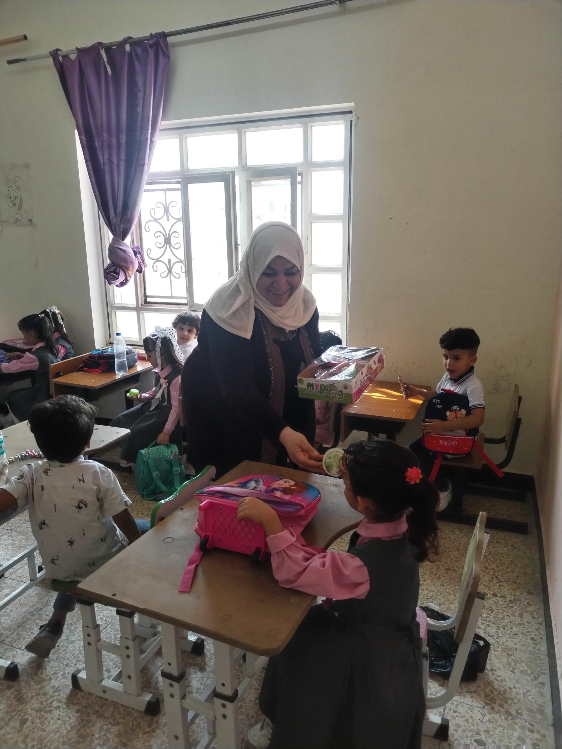 وقام الوفد بتوزيع الهدايا واللعب والقرطاسية على الاطفال بمناسبة بدء العام الدراسي الجديد .