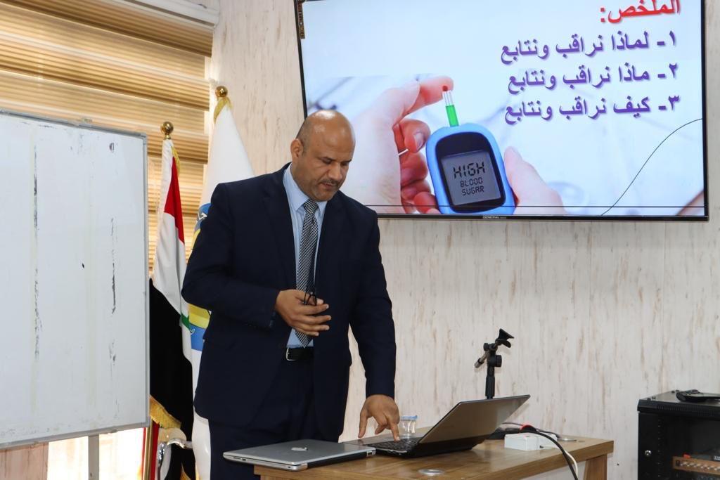 وتضمنت الندوة القاء محاضرات كان أولها للدكتور حيدر إياد الادريسي اختصاص دقيق بمرض السكري والغدد الصم والايض والتي تضمنت رحلة علاجات السكري عبر التاريخ من بداية ظهور السكري لغاية اليوم وما اهمية الطرق المتبعة لتنظيم السكري وابرز العلاجات المستخدمة لتقليل مضاعفات السكري. اما الصيدلانية دعاء قاسم صبيح فقد بينت في محاضرتها اهم المخاطر والمضاعفات لمرض السكري في المدى البعيد والقريب ان تم اهمال مستوى السكر غير المنتظم وكذلك متى تبدأ هذه المضاعفات بالظهور مع توضيح المفاهيم الخاطئة لمرض السكري وكيفية التعامل معها وتصحيحها.