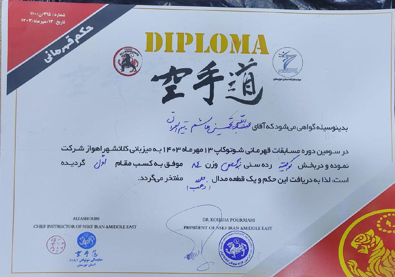 حصد التدريسي في كلية التربية البدنية وعلوم الرياضة في جامعة البصرة عبد الله تحسين الميدالية الذهبية في بطولة ايران الدولية للكاراتيه.