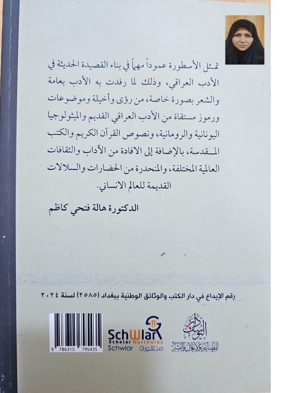 صدر للتدريسية في مركز دراسات البصرة والخليج العربي بجامعة البصرة الدكتور هالة فتحي كاظم كتاباً بعنوان ( شعرية التشكيل الأسطوري في الشعر العراقي الحديث ) .
