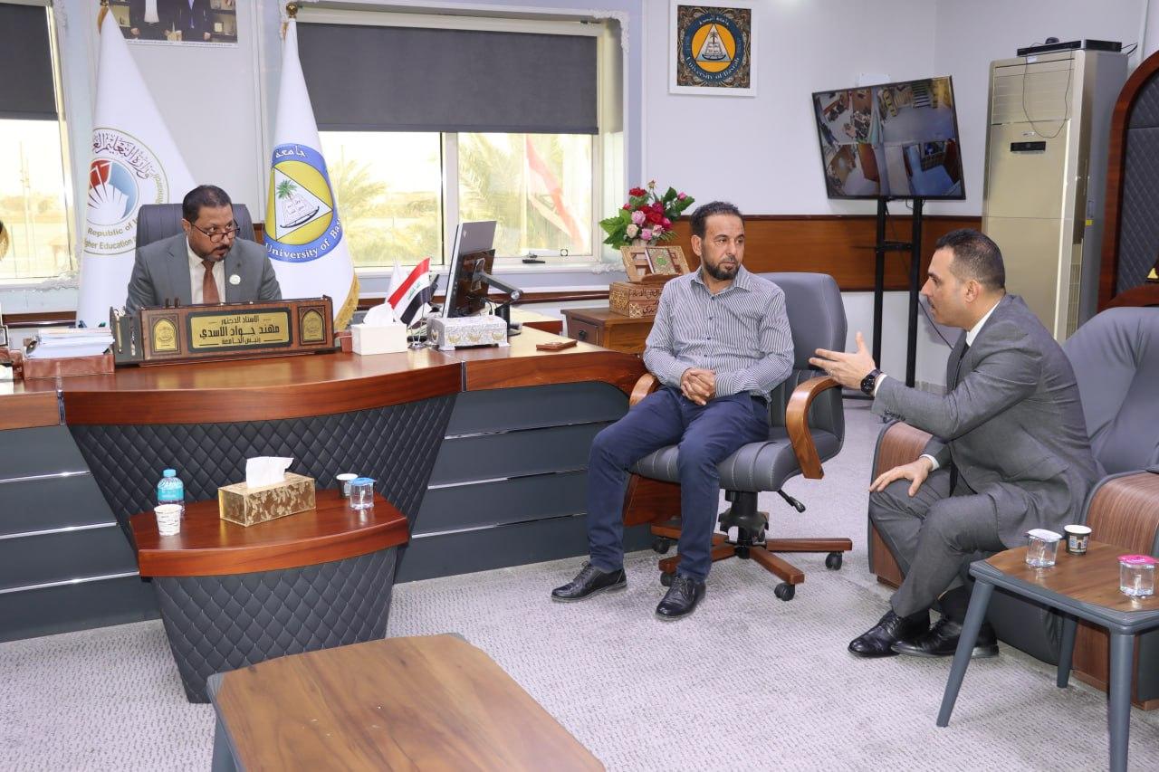 استقبل رئيس جامعة البصرة الدكتور مهند جواد كاظم اللجنة الوزارية الخاصة بتطوير كلية طب الزهراء وتوفير المستلزمات بحضور مساعد رئيس الجامعة للشؤون الإدارية.