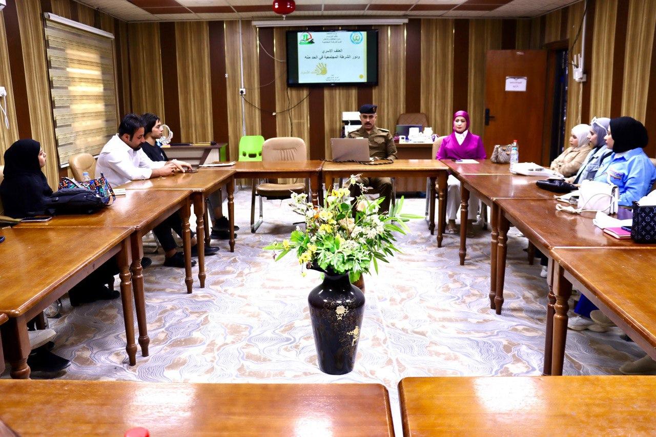 وتضمنت الندوة التي قدمها المقدم منتظر كاظم نعمة مفهوم العنف واستخدام القوة مستعرضاً أهم الأسباب المؤدية إلى استخدامه بما في ذلك العوامل الاقتصادية والثقافية والاجتماعية.
