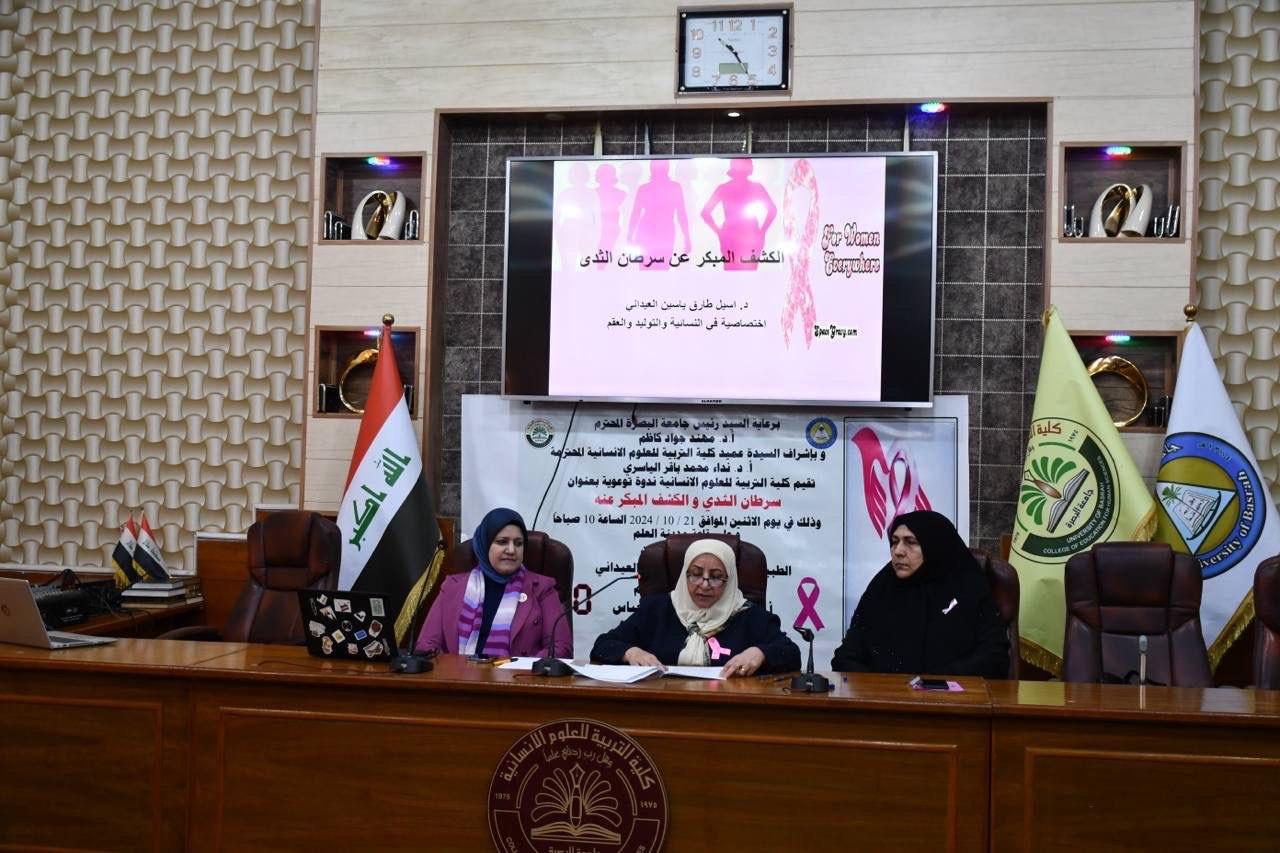 نظمت كلية التربية للعلوم الإنسانية في جامعة البصرة ندوة توعوية عن سرطان الثدي في الشهر المخصص للكشف المبكر عن هذا النوع من السرطانات.