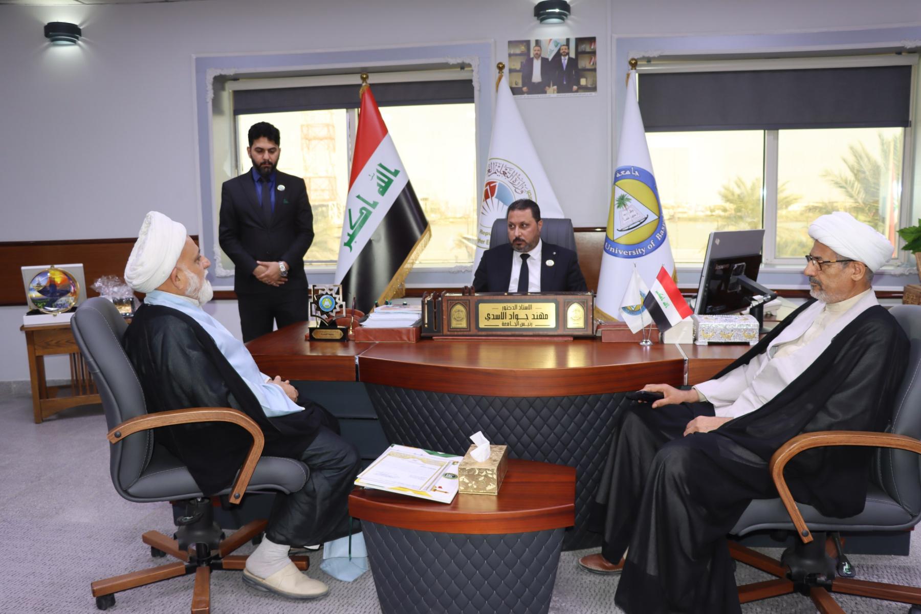 ضمن تعزيز اطر التعاون بين جامعة البصرة والعتبات المقدسة استقبل رئيس الجامعة الدكتور مهند جواد كاظم وفد قسم الشؤون الدينية بالامانة العامة للعتبة الحسينية المقدسة متمثلاً بالمبلغين عن محافظة البصرة كلاً من الشيخ هاني عبد النبي والشيخ عدنان الصالحي.