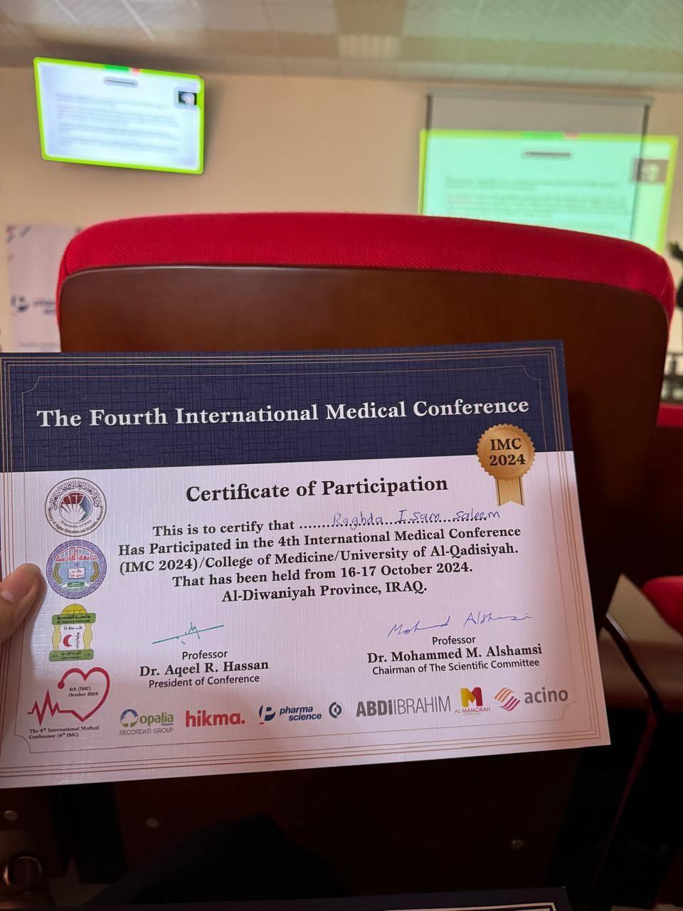 شاركت التدريسية في كلية الطب بجامعة البصرة الدكتورة رغدة عصام سليم في المؤتمر الطبي الدولي الرابع لكلية الطب الذي عقد بجامعة القادسية.