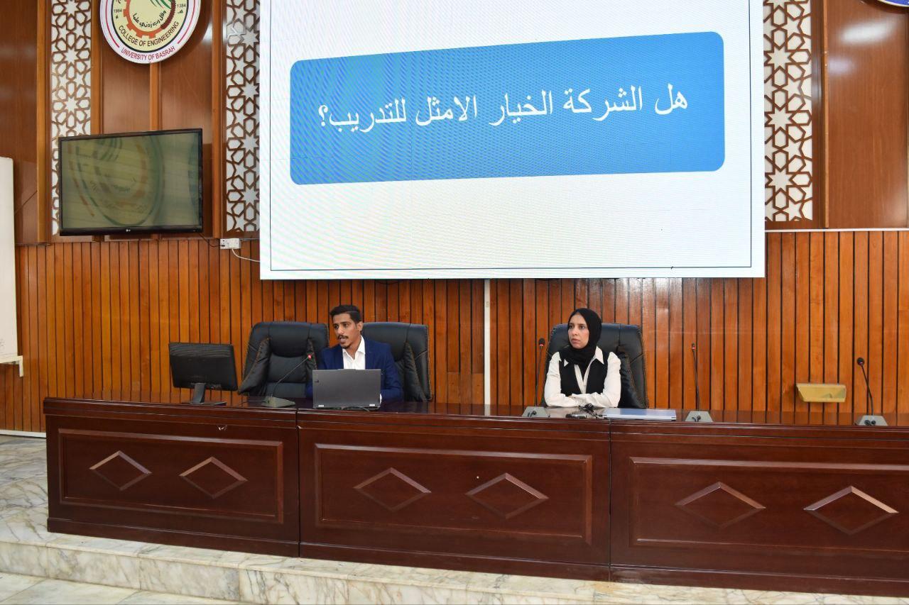 نظمت كلية الهندسة في جامعة البصرة محاضرة عن اهمية التدريب الصيفي لطلبة الجامعات في المؤسسات الحكومية.