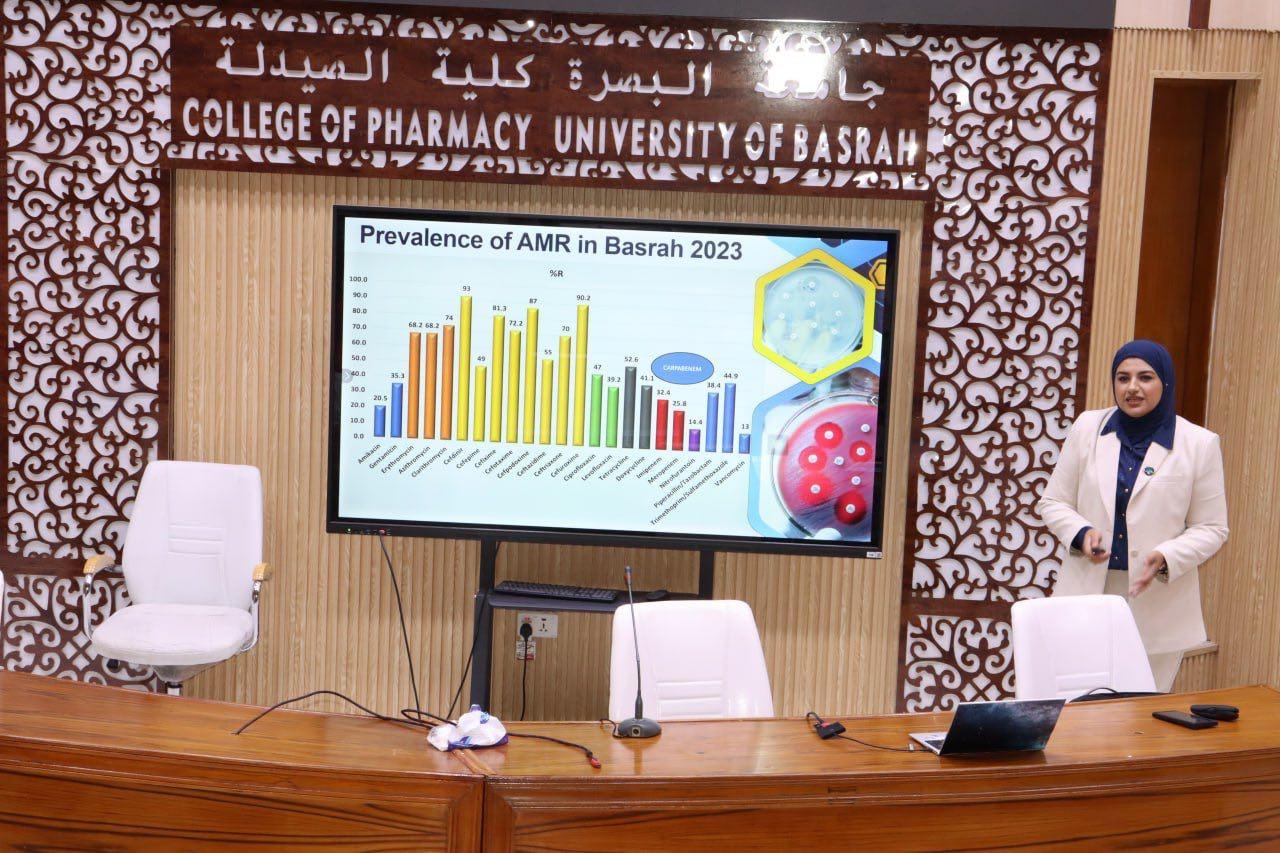 وتضمنت الندوة التي القتها الصيدلانية الاء محمد محمود مراجعة تحليلية لخطة عمل منظمة الصحة العالمية وبيانات المقاومة في البصرة لعام ٢٠٢٣ وشرحاً مفصلاً عن مقاومة مضادات الميكروبات وتأثيراتها على الصحة العامة الى جانب عرض بيانات حديثة حول مدى انتشار مقاومة المضادات الحيوية في محافظة البصرة .