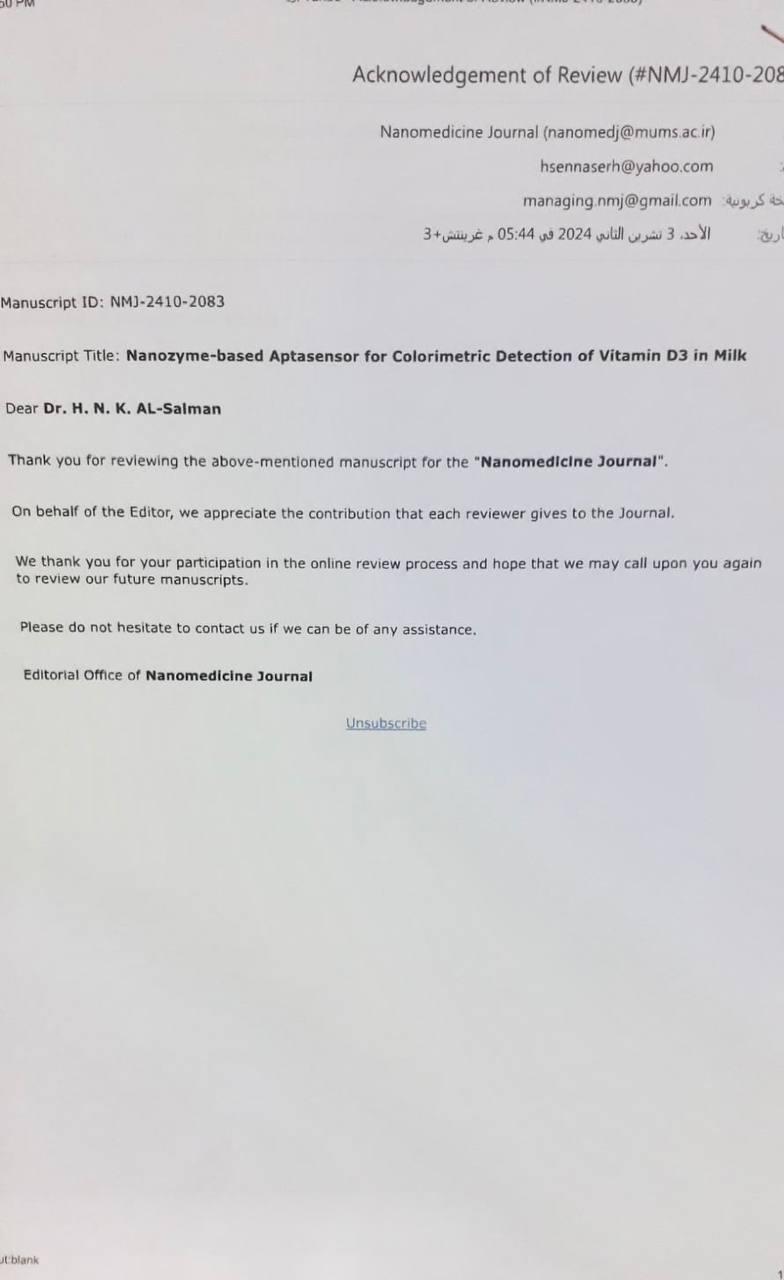 اختير التدريسي في كلية الصيدلة في جامعة البصرة الدكتور حسين ناصر خلف مقيماً علمياً لمجلة Nanomedicine Journal