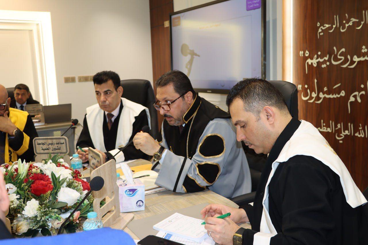 كما ناقش المجلس عدة مواضيع استمراراً للنهوض بالمسيرة العلمية والعملية للجامعة وتخللت جلسة المجلس تكريم رئيس الجامعة من قبل عميد كلية الطب البيطري بدرع مؤتمرهم العلمي الدولي التاسع لرعايته ودعمه المتواصل للنشاطات العلمية المتميزة واهتمامه الكبير بتلاقح الخبرات البحثية بين الجامعات العراقية والعالمية.