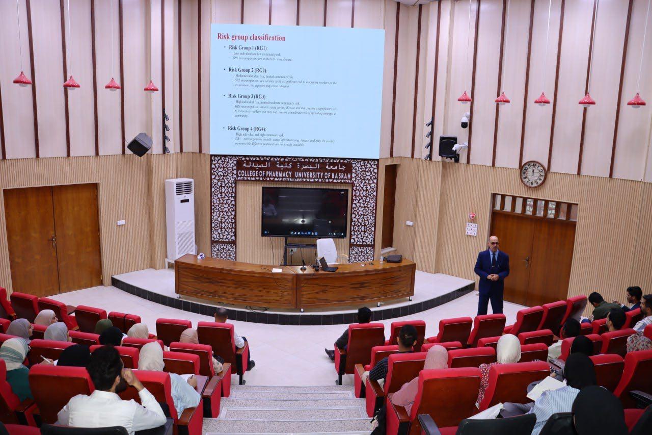 نظمت كلية الصيدلة في جامعة البصرة ورشة عمل حول المخاطر البيولوجية في مختبرات الأبحاث لطلبة الدراسات العليا.