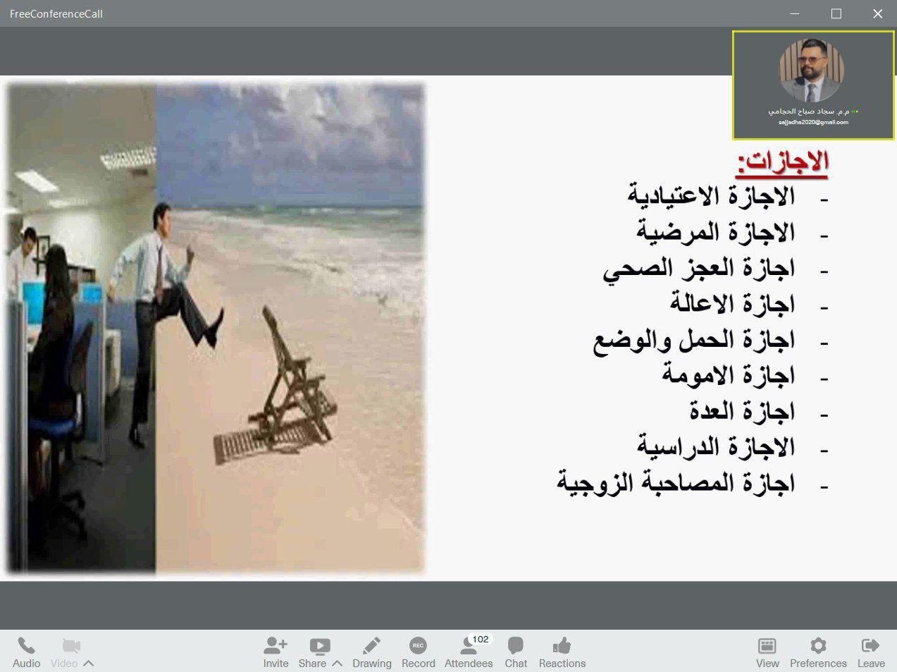 نظم مركز التطوير والتعليم المستمر في جامعة البصرة محاضرة عبر الانترنيت عن الوظيفة العامة وواجبات الموظف ضمن المحور القانوني لدورة مهام ومسؤوليات الادارات الوسطى .
