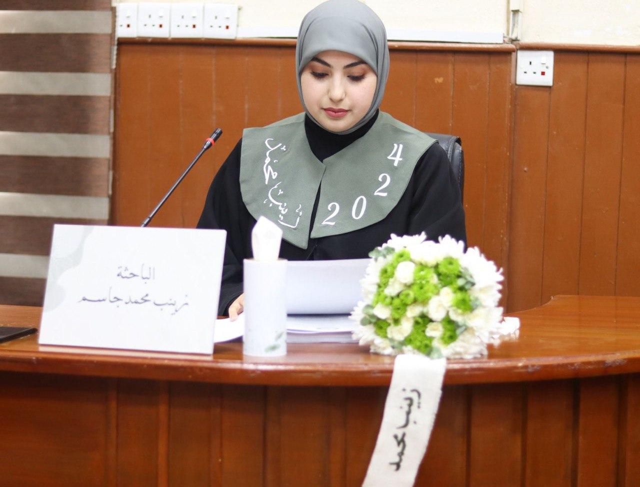 وهدفت الرسالة التي قدمتها الطالبة زينب محمد جاسم الساعدي التعرف على تقييم الأنشطة الصفية واللاصفية بكلية التربية للعلوم الإنسانية بناءً على آراء طلبة المرحلة الرابعة.