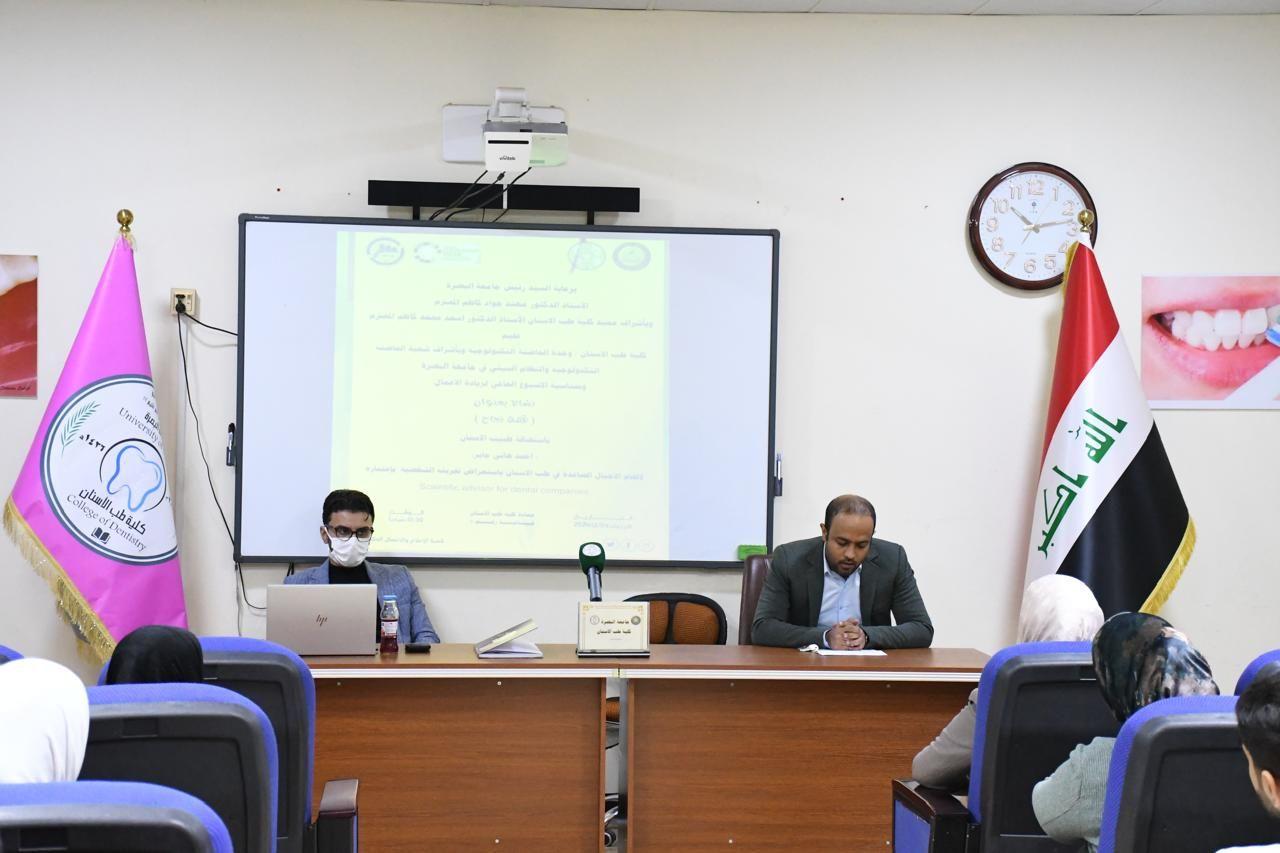 اقامت كلية طب الاسنان بجامعة البصرة محاضرة بعنوان قصة نجاح ضمن نشاطات اسبوع ريادة الاعمال العالمي وبمتابعة وحدة الحاضنه التكنولوجيه في الكلية.