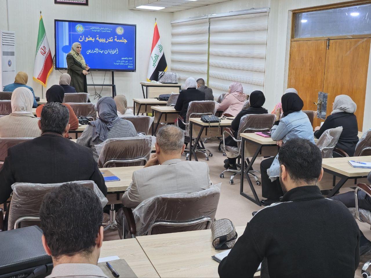وتهدف المحاضرة جلسة تدريب "أخلاقيات مهنة التدريس" إلى ترسيخ القيم الأخلاقية لدى التدريسي وتعزيز الوعي بأهمية الالتزام بأخلاقيات المهنة.