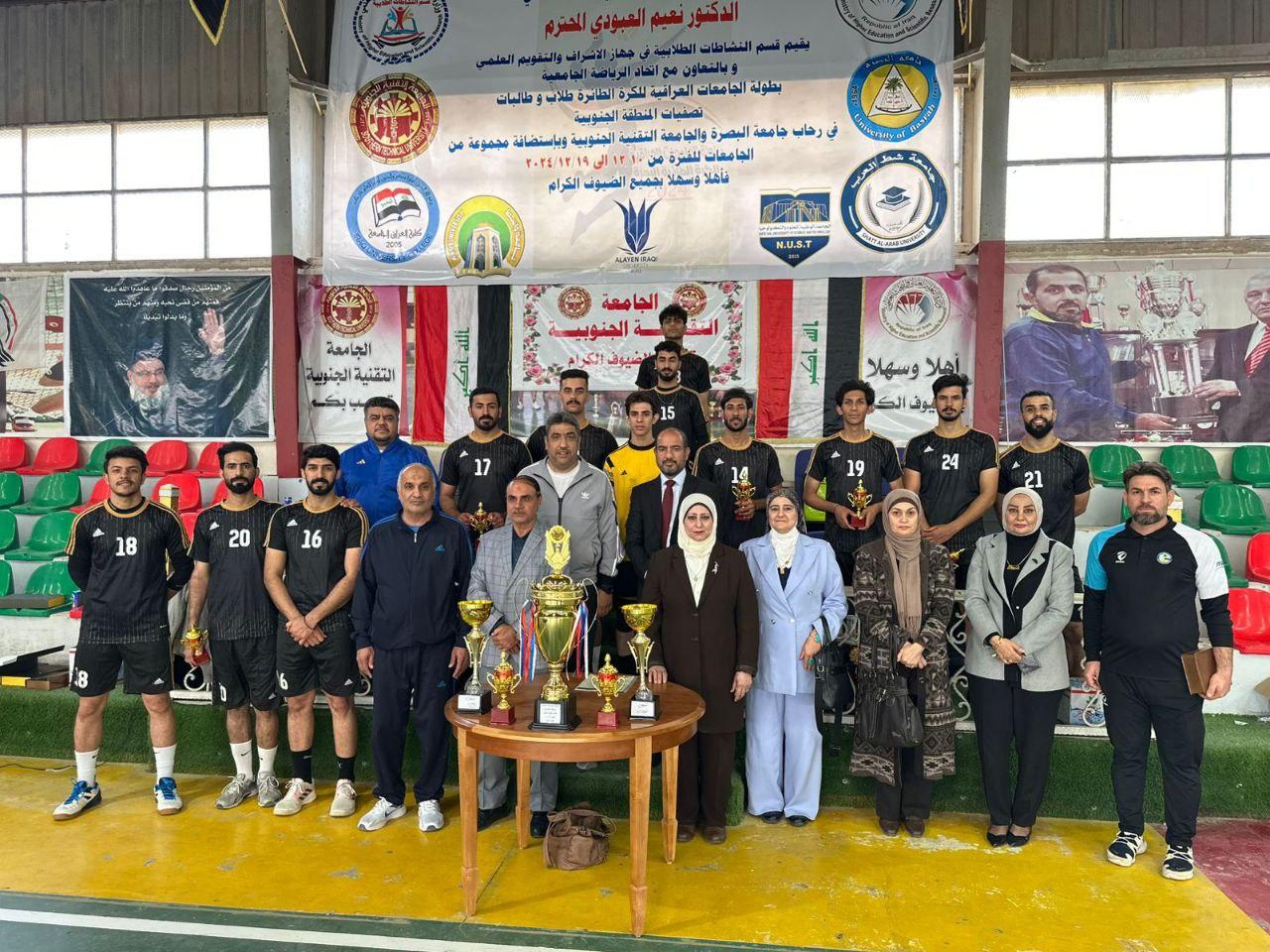 بعد تتويجها بطلة لفئة الطالبات في كرة الطائرة .. جامعة البصرة تتوج بطلة لفئة الطلاب