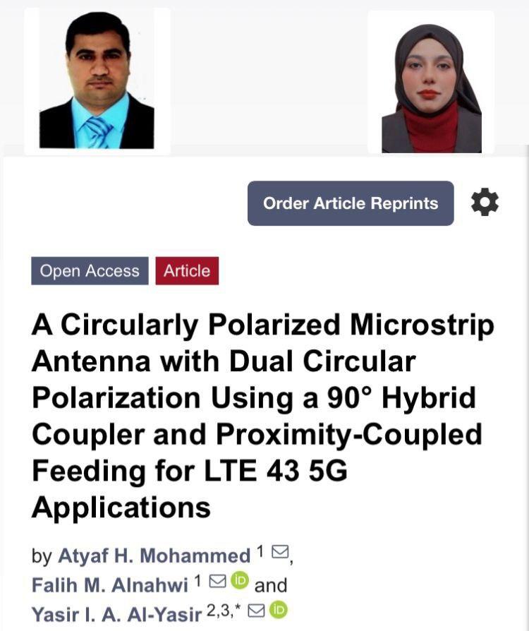 بحثت دراسة علمية في جامعة البصرة اعدها التدريسي في كلية الهندسة الدكتور فالح مهدي موسى بالتعاون مع طالبة الماجستير اطياف حامد محمد تصميم هوائي شريحة ذي استقطاب كهرومغناطيسي دائري بدورانين متعاكسين باستخدام شبكة تغذية خاصة لاغراض اتصالات الجيل الخامس.