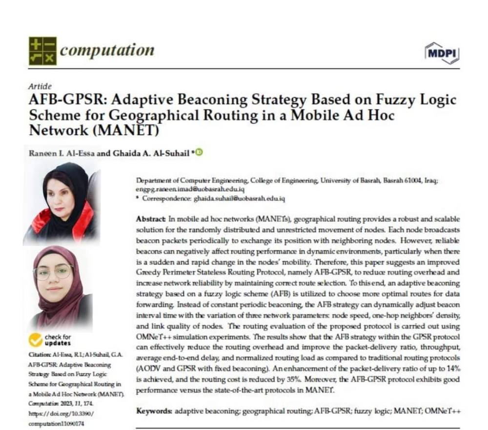 تدريسيتان في جامعة البصرة تنشران بحثا في مجلة سويسرية...