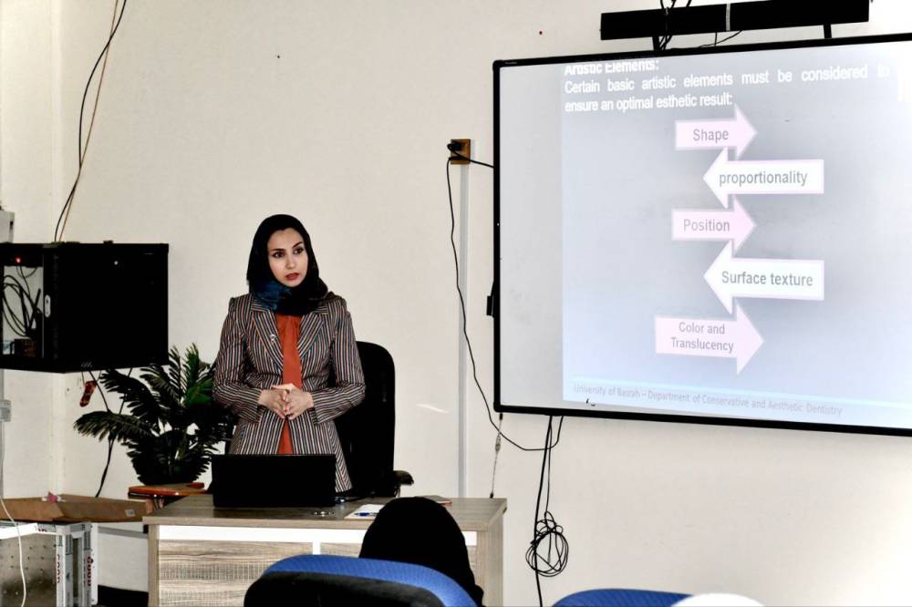 جامعة البصرة تقيم محاضرة علمية بعنوان تصحيح الفراغ بين الاسنان الامامية...