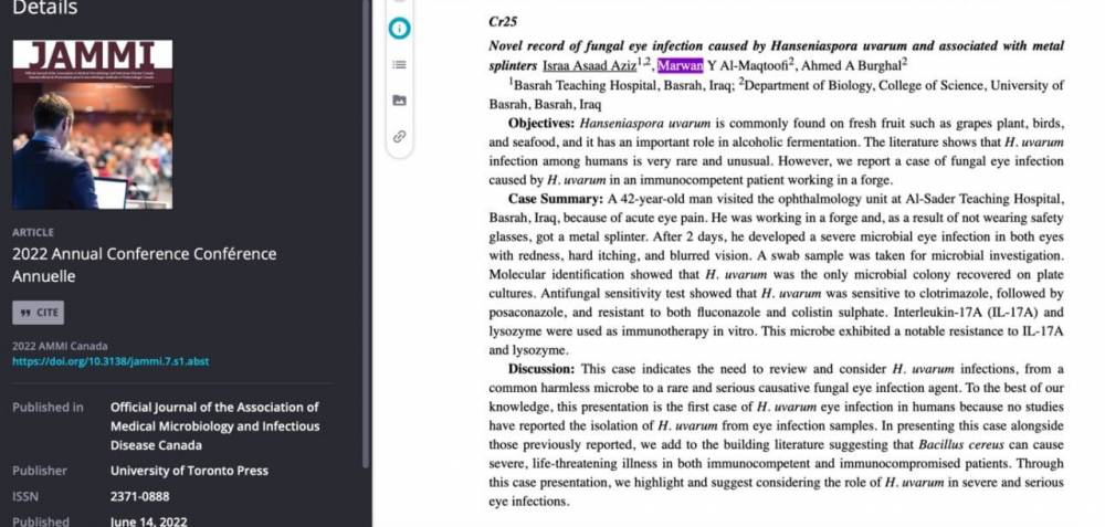 فريق بحثي في جامعة البصرة يسجل حالة مرضية لاول مرة تصيب العين...