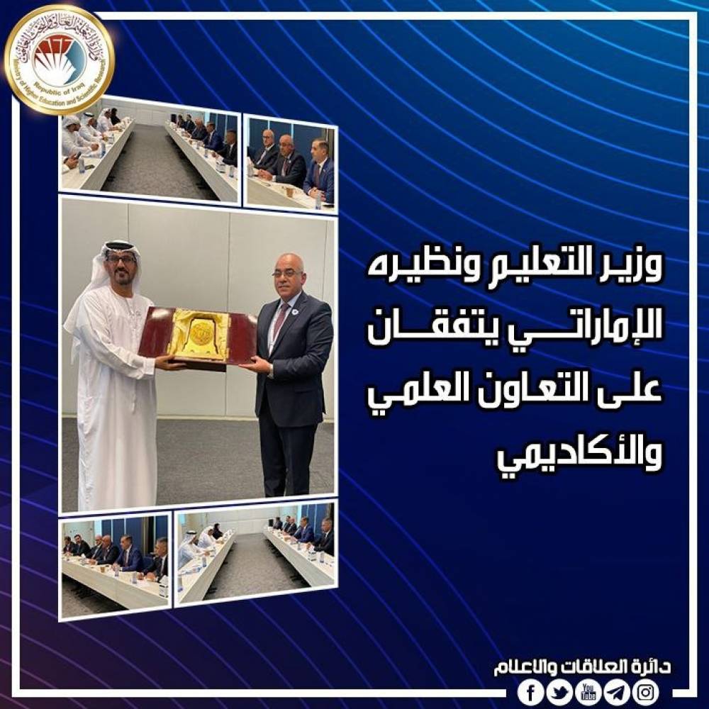اتفاق العراق والإمارات على مذكرات للتفاهم في مجالات التعليم العالي والبحث العلمي...