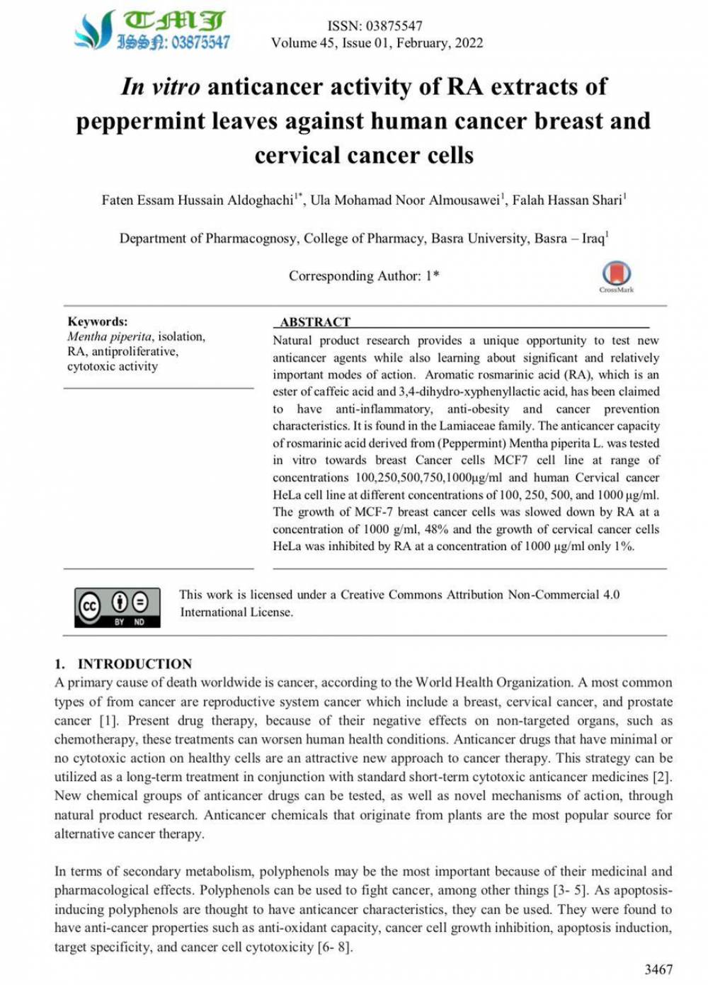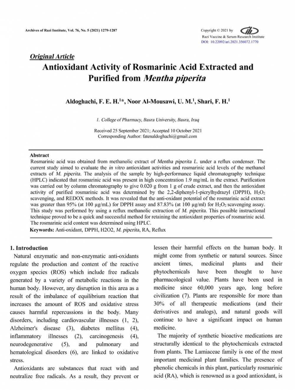تدريسيون فـــــــي جامعة البصرة ينشرون بحثاً فـــــــي مجلة عالمية...