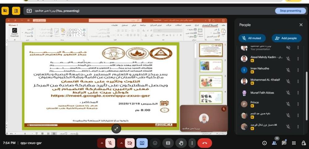 جامعة البصرة تقيم محاضرة إلكترونية عن التلوث وتأثيره على صحة الإنسان...
