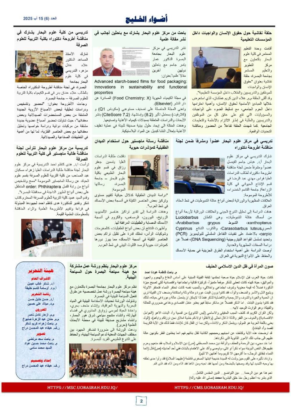 جامعة البصرة تصدر العدد السادس من نشرة "أضواء الخليج"...