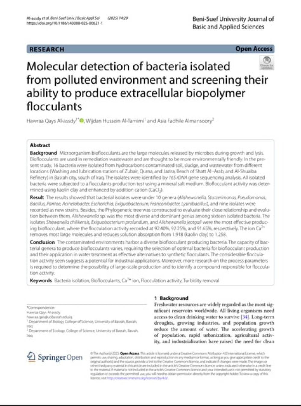 دراسة علمية في جامعة البصرة تبحث عن البكتريا وانتاج مواد تكتل البوليمر الحيوي...