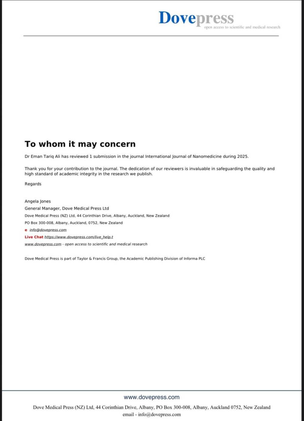 اختيار تدريسية في جامعة البصـــرة مقيماً علمياً في مجلة عالميـة...
