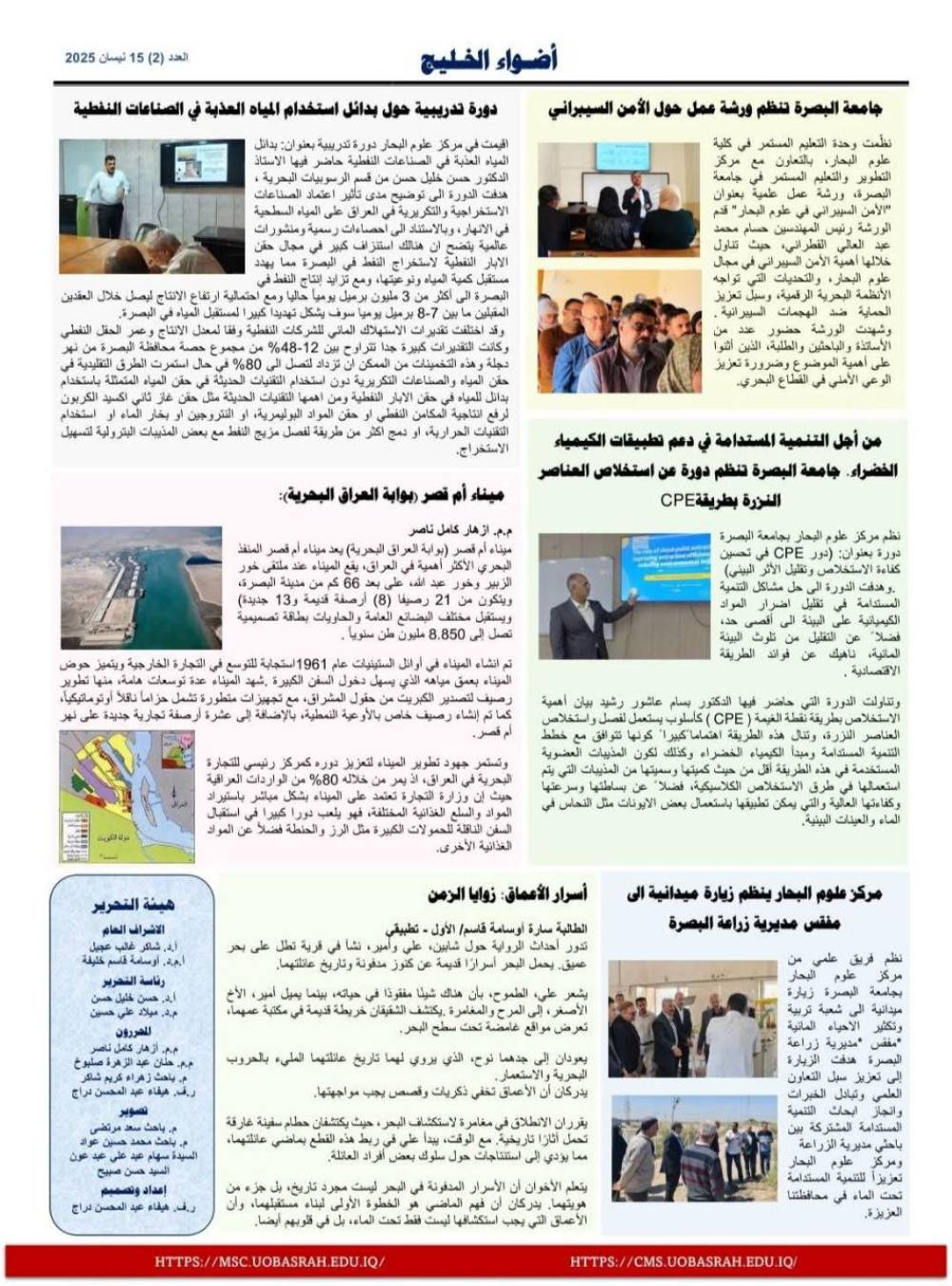 جامعة البصرة تصدر العدد الثاني من نشرة "أضواء الخليج"...