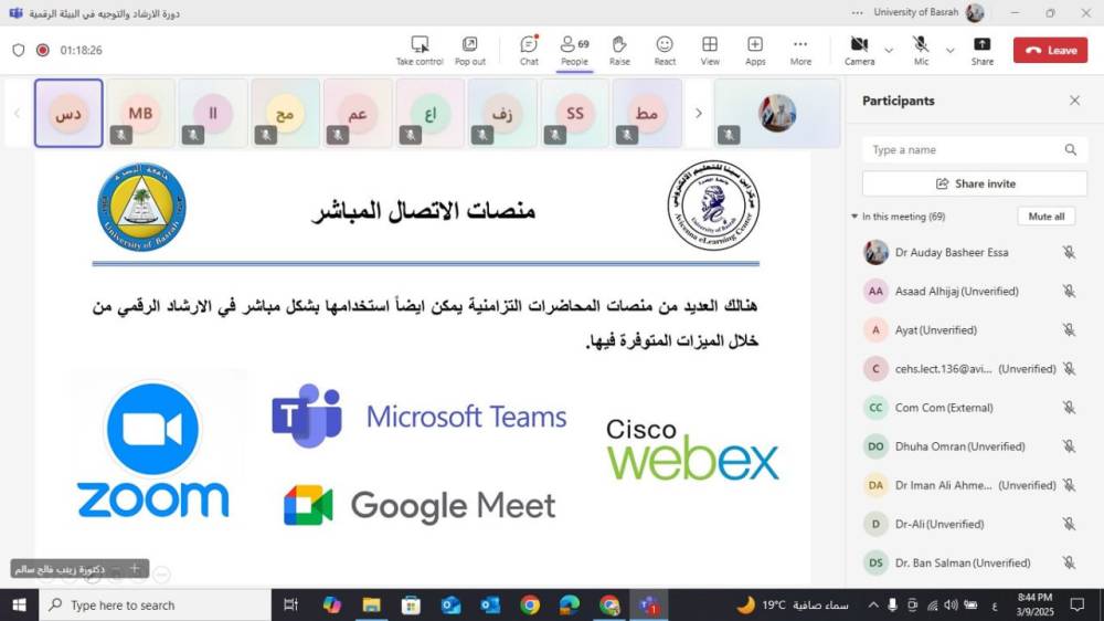 جامعة البصرة تنظم ورشة عن التقنيات الحديثة للإرشاد في البيئة الرقمية...