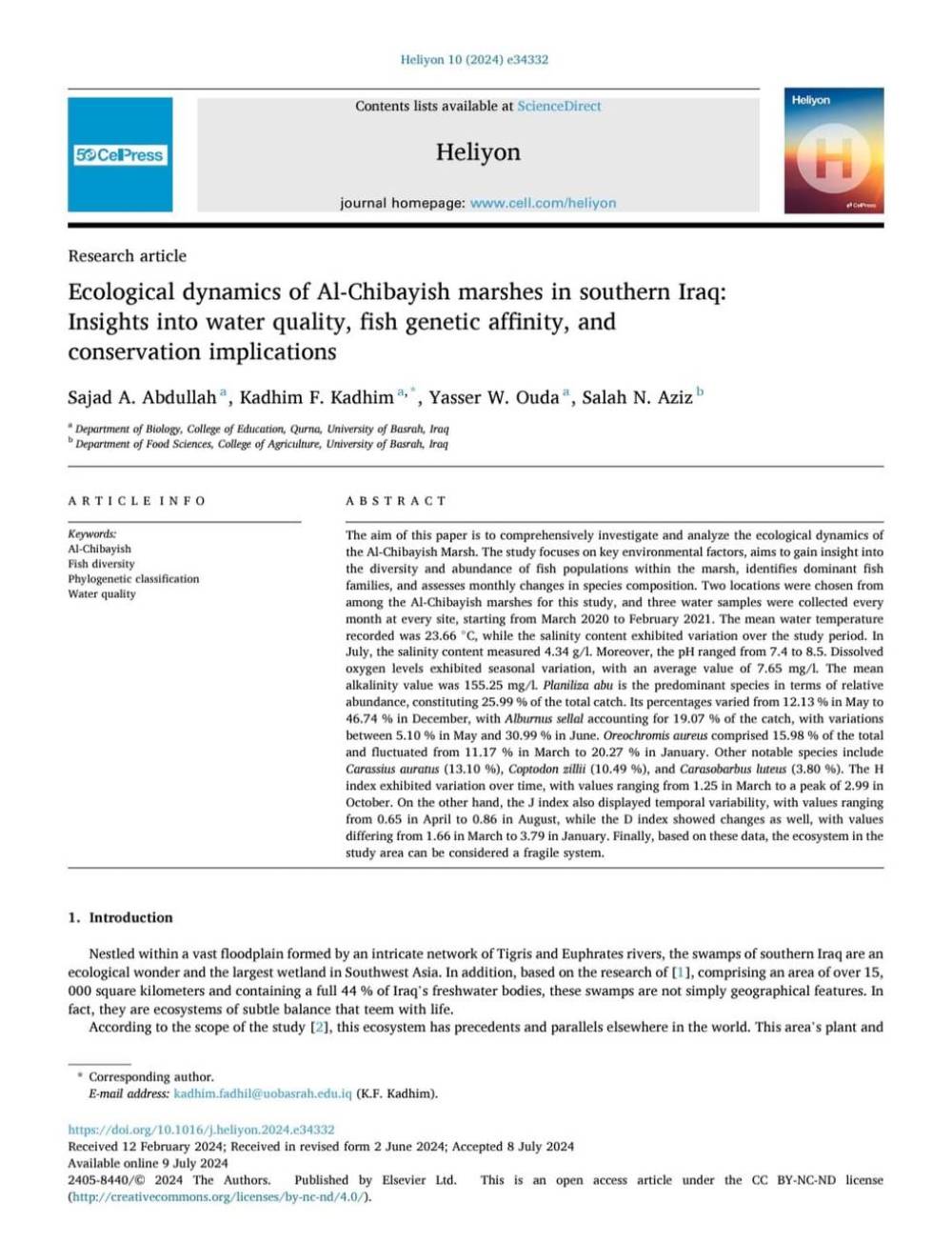 دراسة علمية في جامعة البصرة تبحث عن الديناميكيات البيئية لأهوار الجبايش في جنوب العراق...