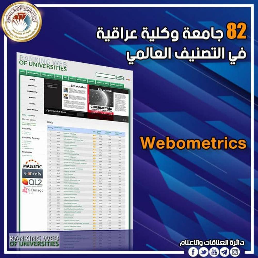 سجلت نتائج تصنيف الويب ماتريكس العالمي حضور وتنافس اثنتين وثمانين جامعة عراقية حكومية وأهلية ضمن نسخة النصف الثاني من ال ..