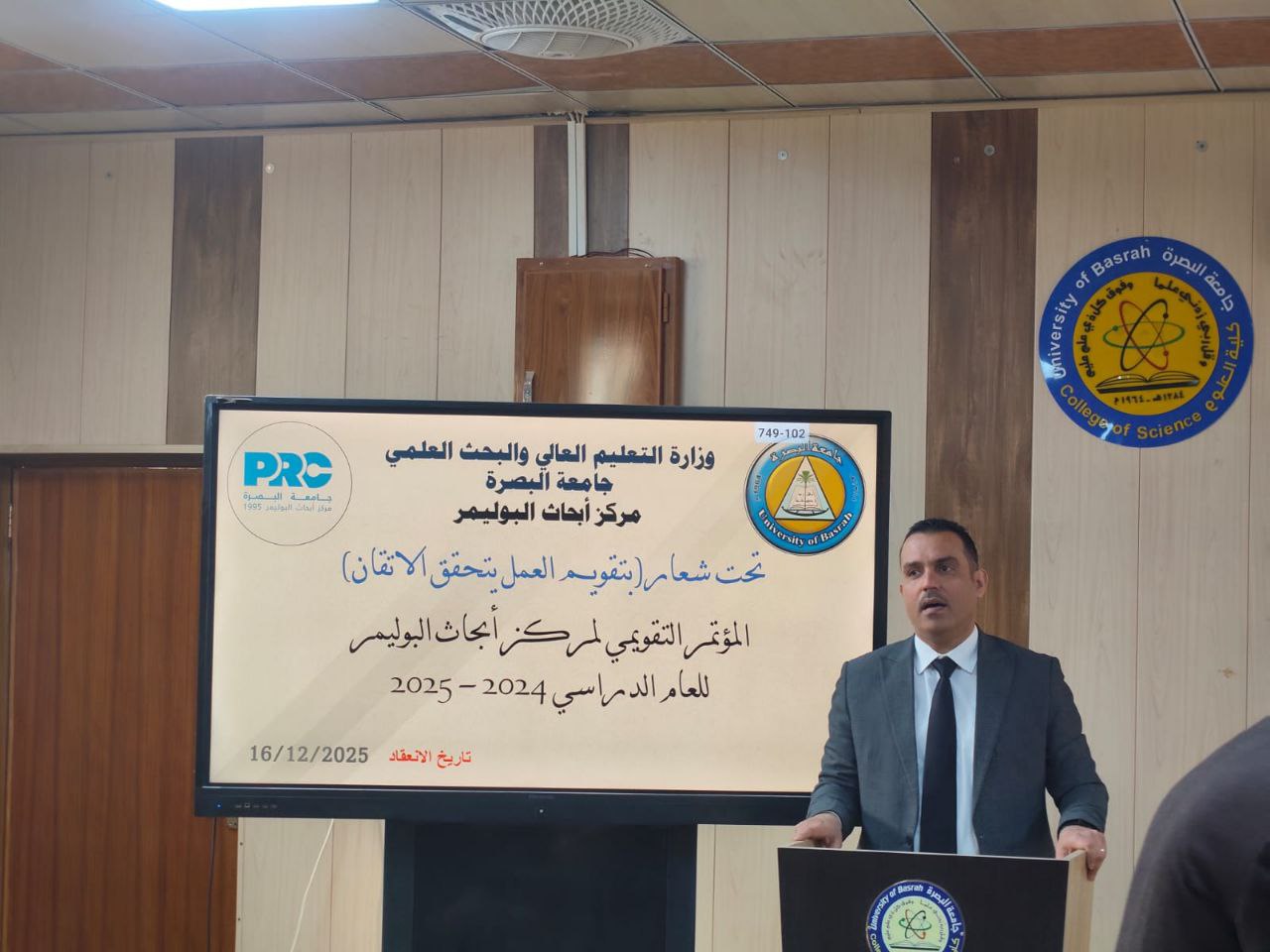 نظم مركز ابحاث البوليمر-جامعة البصرة مؤتمرا تقويمياً لسنة ٢٠٢٤ - ٢٠٢٥ يوم ١٦/ ١٢ /٢٠٢٥ وبحضور مساعد رئيس الجامعة للشؤون العلمية الدكتور حيدر خزعل وعميد كلية العلوم دكتور علي عبد الامام ومساعدي العلمي والاداري ومدير مركز ابحاث البوليمر الدكتوره زينب جمعه صويح ونخبة من اساتذه الجامعة والباحثين المختصين وذلك في اطار سعية المستمر لتقييم الاداء البحثي ، وناقش المؤتمر ابرز الانجازات التي حققها المركز خلال ٢٠٢٤- ٢٠٢٥، اضافة الى استعراض التحديات ووضع الخطط المستقبلية للتعزيز من جودة البحث العلمي والنشر الاكاديمي ، واكد مساعد رئيس الجامعة للشؤون العلمية الدكتور حيدر خزعل ان المؤتمر يمثل محطة لمراجعة المسار البحثي وتطوير اليات العمل بما ينسجم مع المعايير الاكاديمية المعتمدة ، واختتم المؤتمر بجملة من التوصيات الهادفة الى الارتقاء بواقع البحث العلمي ودعم الباحثين.