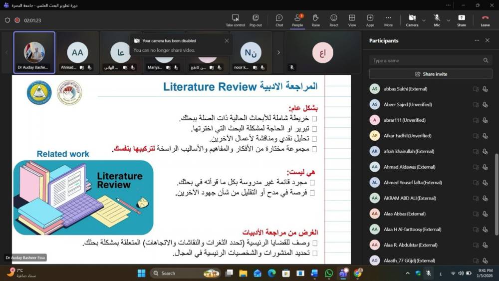 جامعة البصرة تنظم ورشة الكترونية عن مهارات كتابة البحث العلمي...