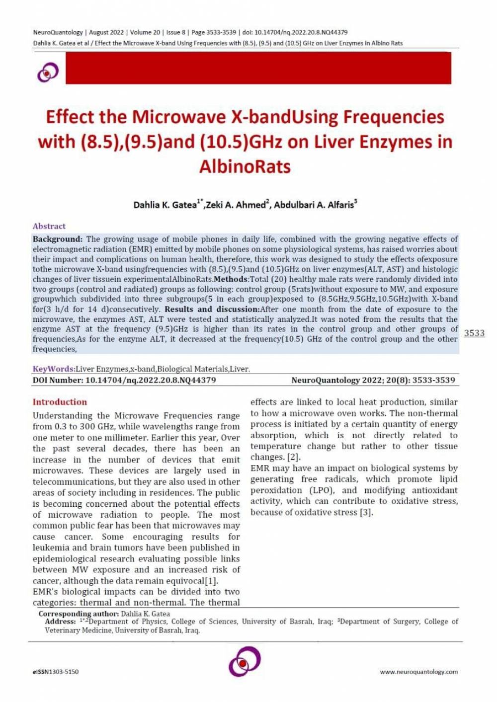 دراسة علمية في جامعة البصرة تبحث في تأثير الموجات الدقيقة للنطاق x على إنزيمات الكبد...