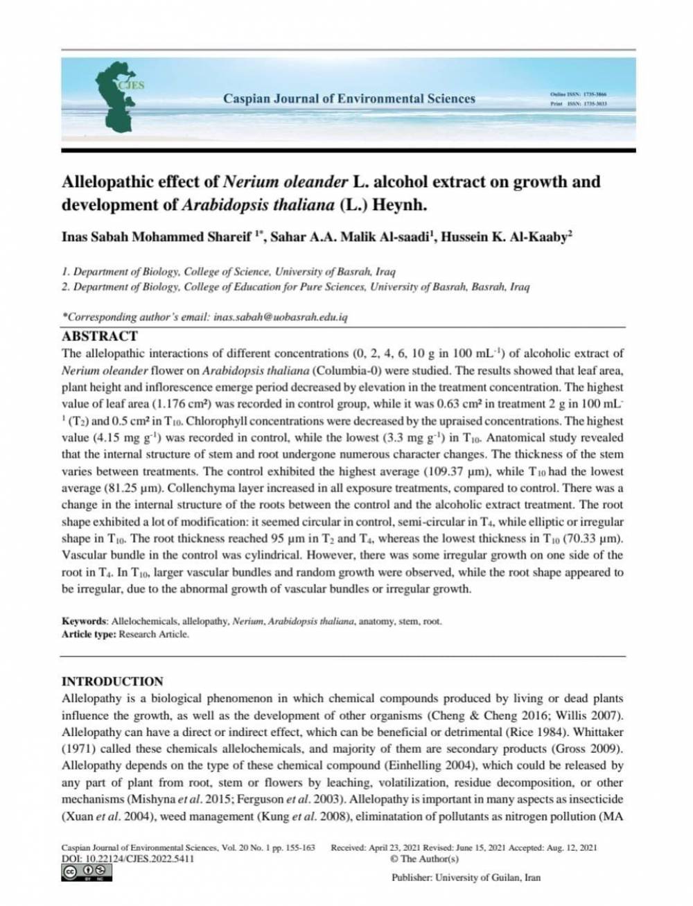 دراسة علمية في جامعة البصرة تبحث التضاد الكيميائي...