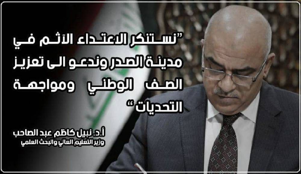 *وزير التعليم يستنكر الاعتداء الآثم في مدينة الصدر*...