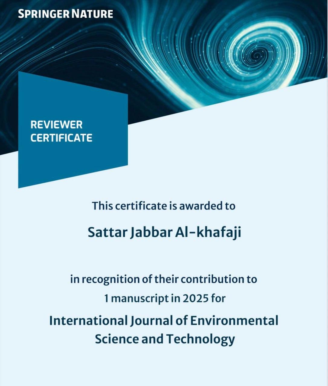 وبيّن الدكتور الخفاجي أن المجلة مفتوحة الوصول (Open Access) وتنشر أبحاثًا في مجالات العلوم البيئية والتكنولوجيا والهندسة والإدارة، وهي مصنّفة ضمن مستوعبات Scopus وClarivate ضمن الربع الأول (Q1)، وتمتلك معامل تأثير (Impact Factor) يبلغ 3.4، وتصدر عن دار النشر Springer وScience + Business Media.
