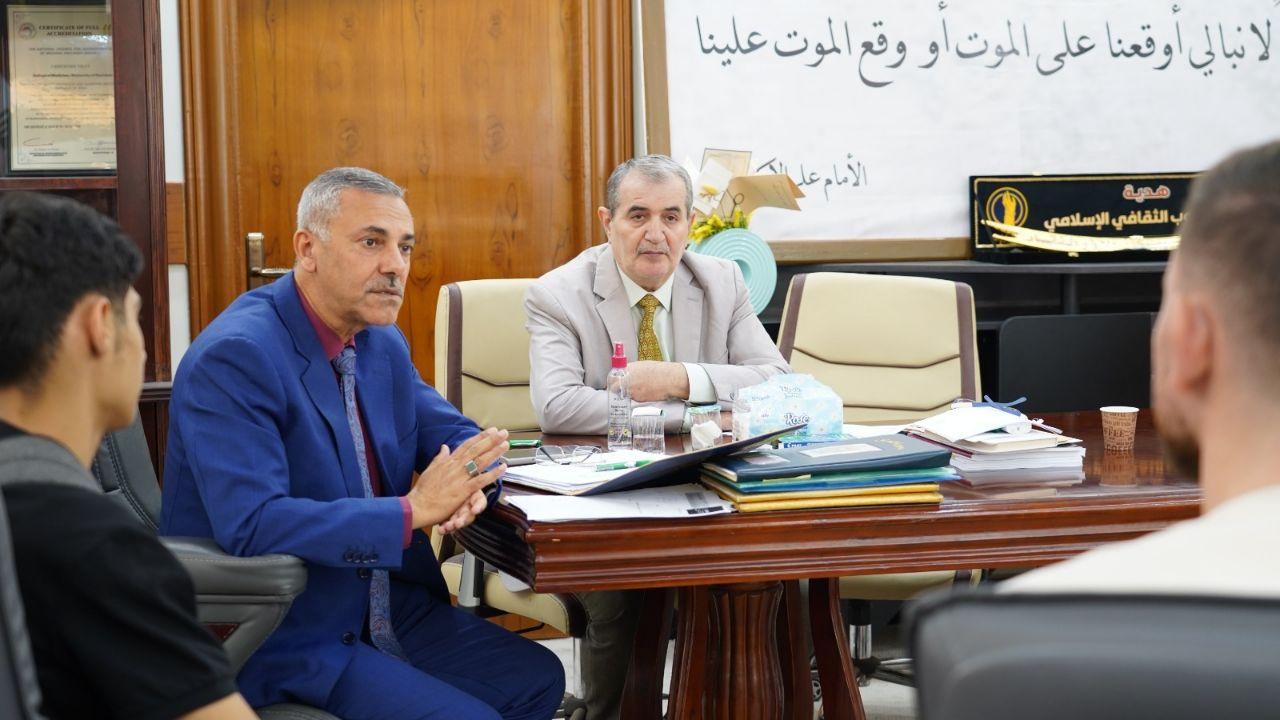 التقى عميد كلية الطب بجامعة البصرة الدكتور نوفل علي المبارك ومعاون العميد للشؤون الإدارية الدكتور جاسم محمد سلمان مجموعة من الطلبة اللبنانيين الجنسية المقبولين في كلية الطب بجامعة البصرة في مختلف المراحل الدراسية وذلك لمتابعة برنامج ادرس في العراق المقرر من قبل وزارة التعليم العالي والبحث العلمي.