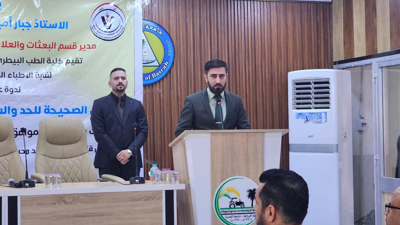 نظمت كلية الطب البيطري بجامعة البصرة ندوة حول الطرق الصحيحة للحد والسيطرة على الحيوانات السائبة، بالتعاون مع نقابة الأطباء البيطريين في البصرة، وبمشاركة عدد من المهتمين بمجال الرفق بالحيوان.