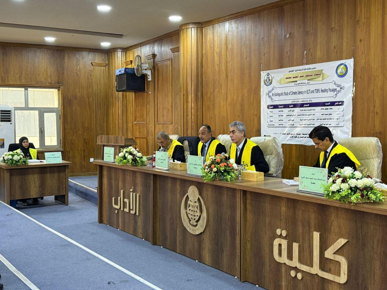 وتهدف الرسالة التي قدمتها الطالبة ميعاد مشكور عبد المجيد إلى تحليل عناصر الثقافة المناخية في النصوص القرآنية في امتحاني الايلتس والتويفل وتقييم مدى ارتباط تمثيل القضايا البيئية في هذه الاختبارات بتحسين الفهم للتحديات المناخية العالمية.