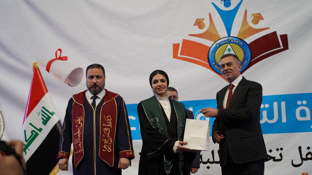 رئيس جامعة البصرة يكرم الطالبة الأولى على الجامعة