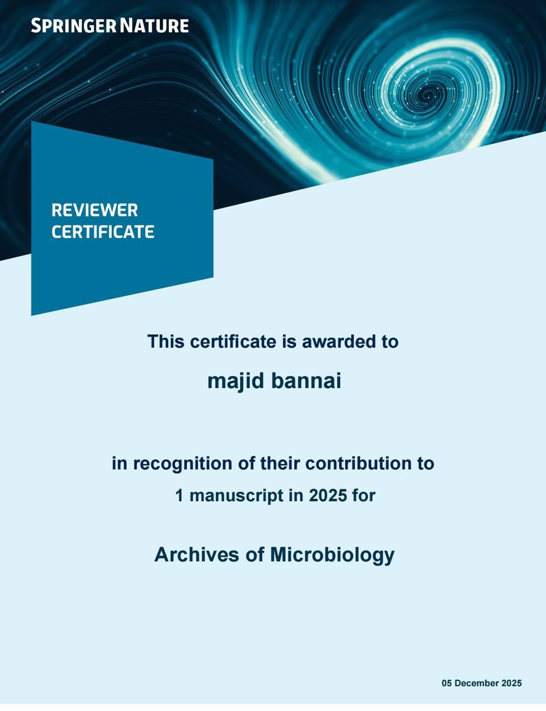 وقال الدكتور ماجد بناي أن هذه المجلة تعنى بنشر البحوث المحكمة في مجال المايكروبايولوجي وعلم الأحياء الدقيقة وتصدر عن دار النشر العالمية Springer Nature في المانيا
