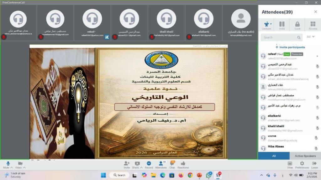 جامعة البصرة تقيم ورشة إلكترونية عن الوعي التاريخي وتوجيه السلوك الإنساني