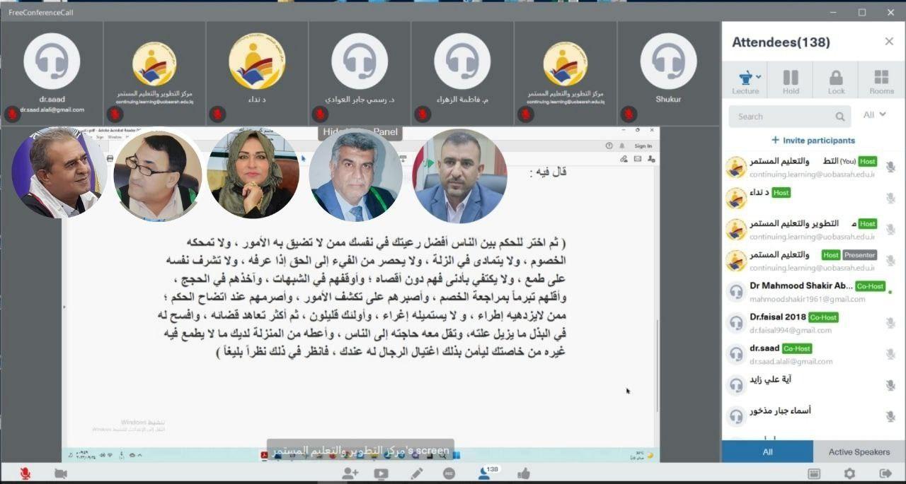 نظم مركز التطوير والتعليم المستمر في جامعة البصرة ندوة عبر الانترنت عن القيادة والحكم (رسالة الامام علي عليه السلام الى مالك الاشتر انموذجا