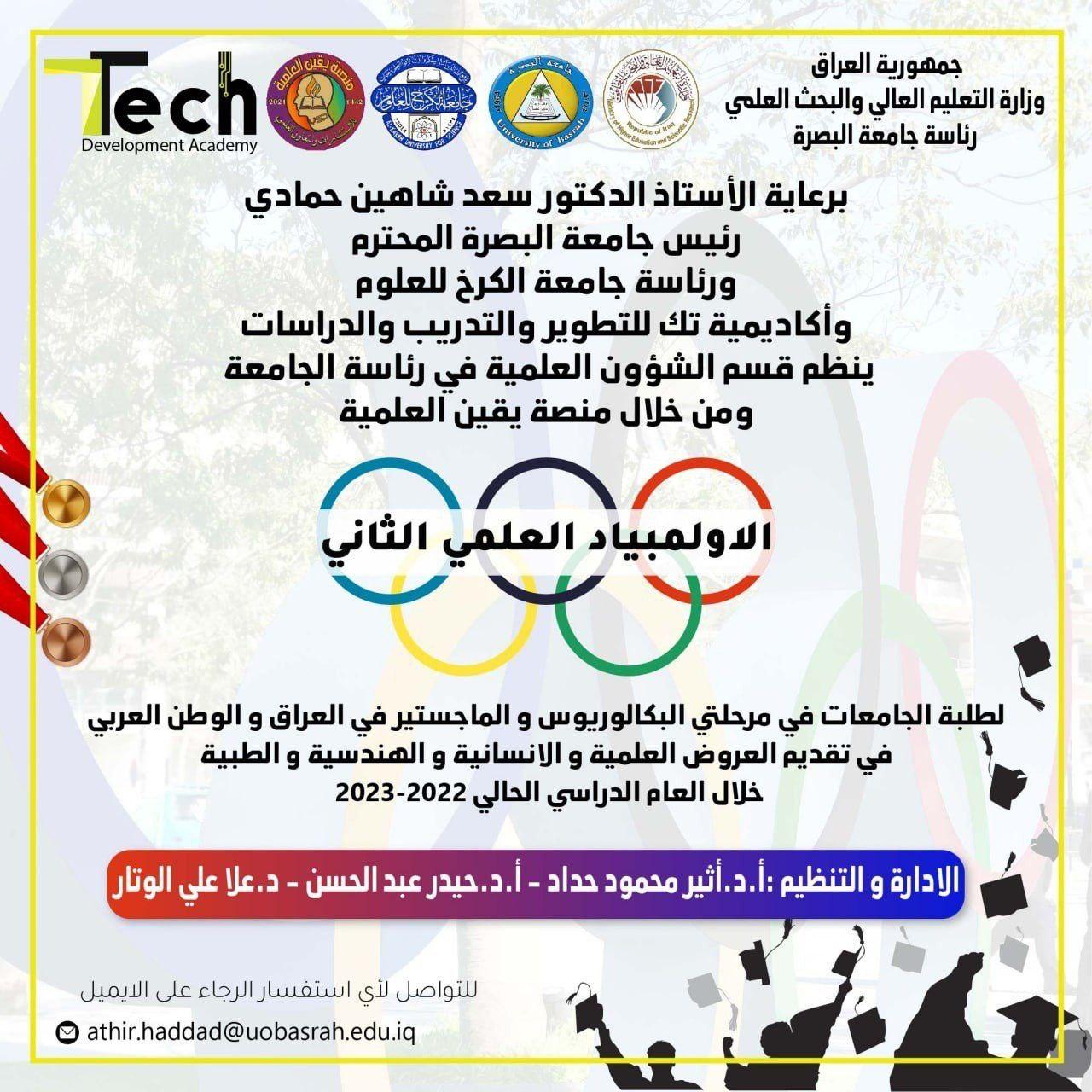 برعاية الاستاذ الدكتور سعد شاهين حمادي رئيس جامعة البصرة المحترم وجامعة الكرخ للعلوم واكاديمية تك للتطوير والتدريب والدراسات