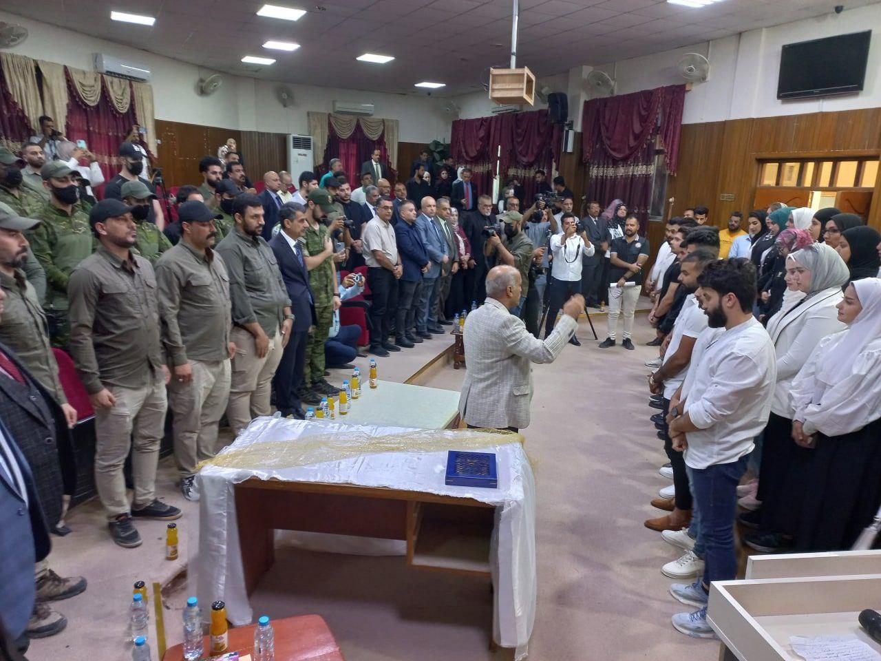 وعن التكريم قال رئيس الجامعة الاستاذ الدكتور سعد شاهين حمادي، يأتي " تكريمنا هذا اليوم لوفدي العتبة الحسينية المقدسة ولواء عاشوراء عموما ً وعائلة الحاج المرحوم داود العاشور في البصرة خصوصاً لما قدموه من دعم كبير لجامعتنا وجهودهم البارزة التي كان آخرها وليس اُخراها تبرعاتهم السخية للأقسام الداخلية للطلبة والتي شملت خمسة عشر شاحنة محملة بالأثاث والمواد الكهربائية ومستلزمات العيش والاقامة لتغطية احتياجات القسم الداخلي رقم تسعة المفتتح حديثا ً والذي يستوعب نحو خمسمائة طالبة، وان هذا الأمر ليس بالجديد فما قدمه الحشد الشعبي المقدس من تضحيات لتحرير العرض والوطن والمقدسات يضعهم في الصف الاول لأعمال البر والخير، ونأمل ان تكون مبادرتهم هذه دافعا ً لجميع الشركات والمؤسسات لدعم ابناءهم الطلبة في جامعتنا، ونحن الان بصدد اكمال مستلزمات الجناح الثاني للقسم المذكور ليستقبل باقي اعداد الطالبات علما بان الاثاث والمواد الكهربائية المتبرع بها تكفي لسد الحاجة وأكثر".